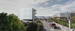 Pravokutni pogled na 2 zaljeva je ugrađen u nepravilni oblik zgrade.